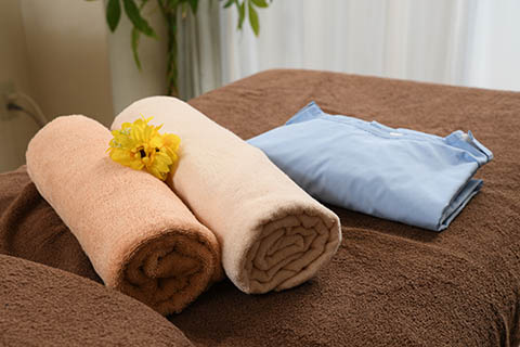 施術内容によって体幹部を出す必要がありお着替えいただくこともあります。お着替えはご用意してありますので、お仕事帰りのスーツ、ワーキングウェアなどでもお気軽にご予約いただけます。